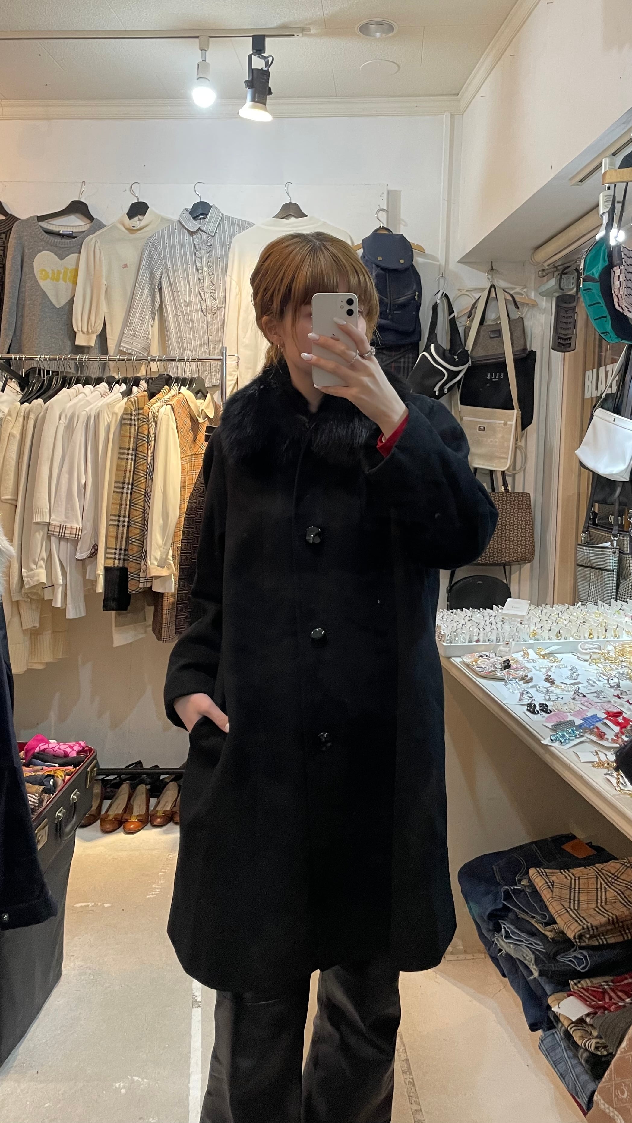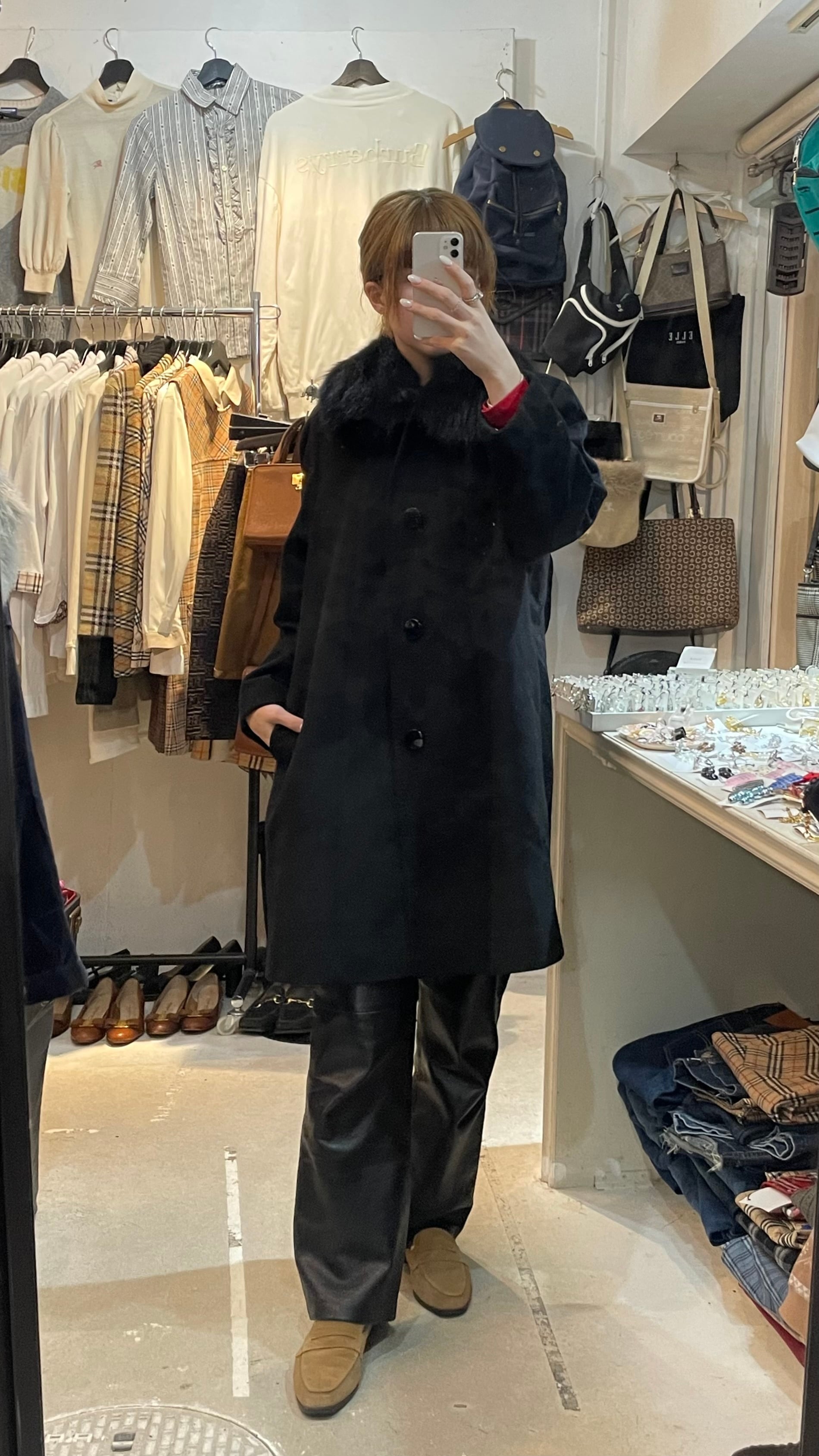 25D27 Vintage cashmere × fox fur coat