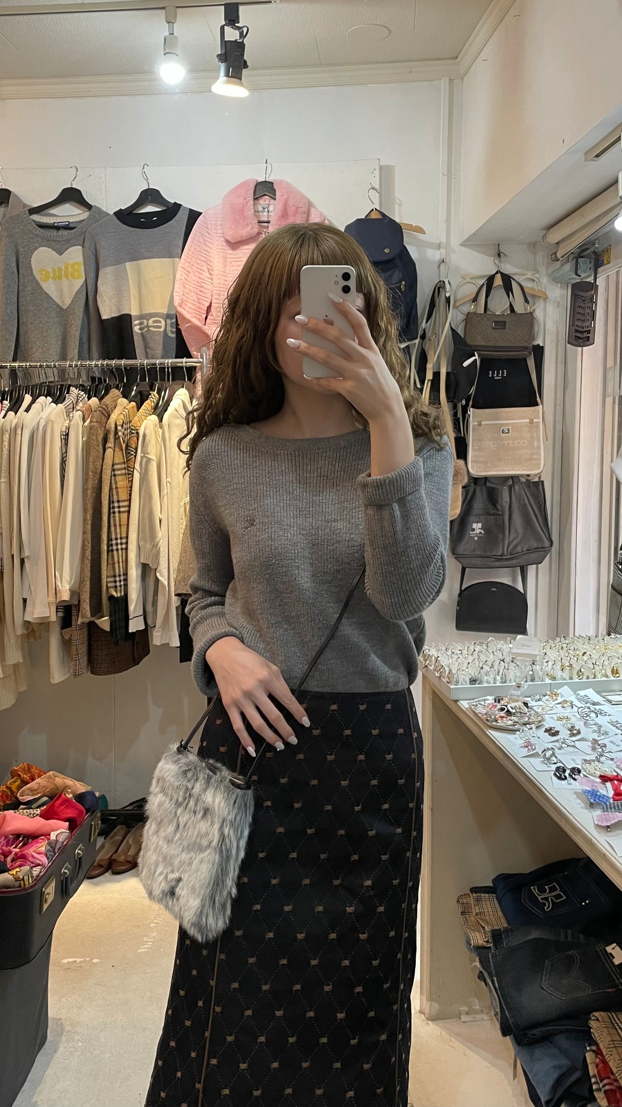 25D95 Courreges fake fur shoulder bag