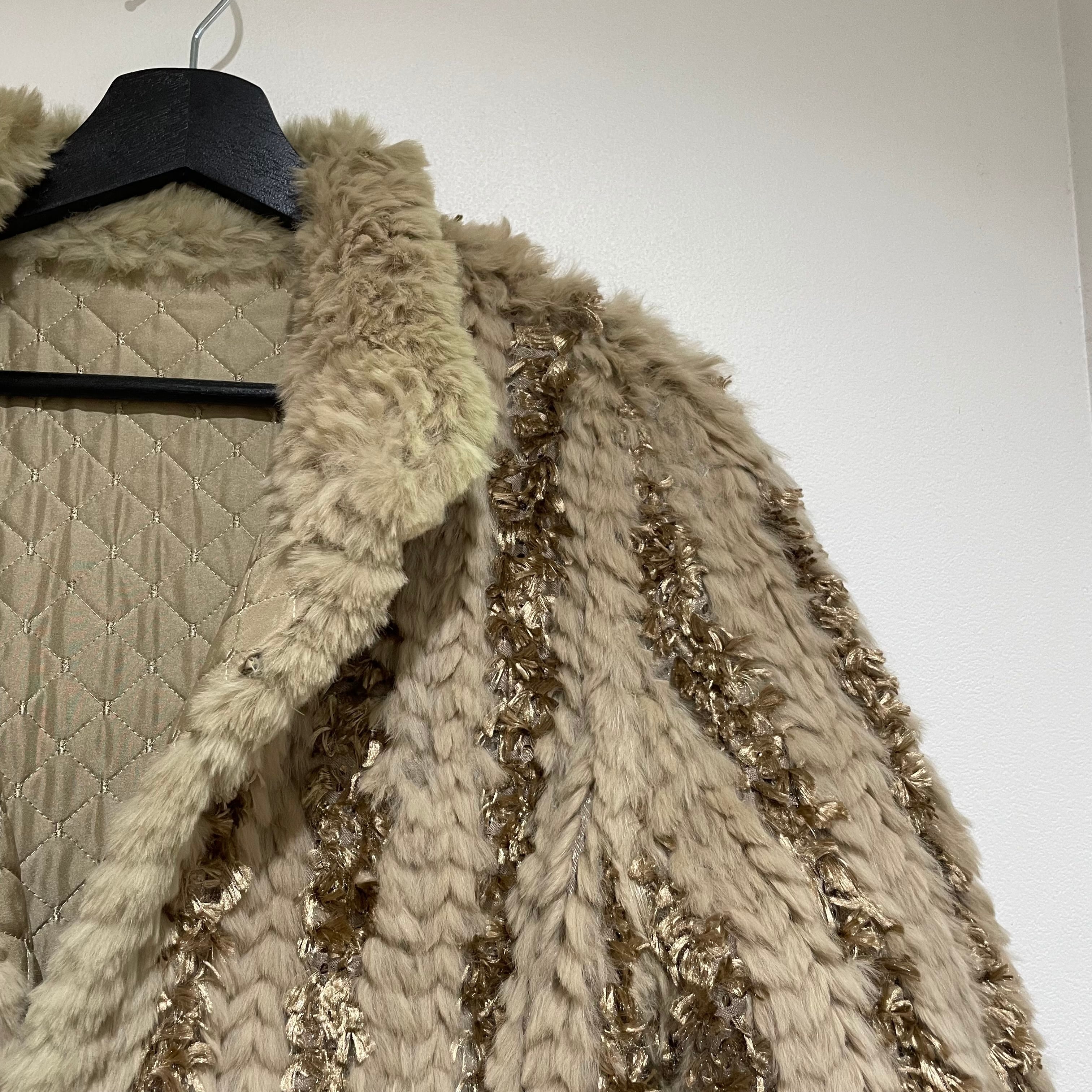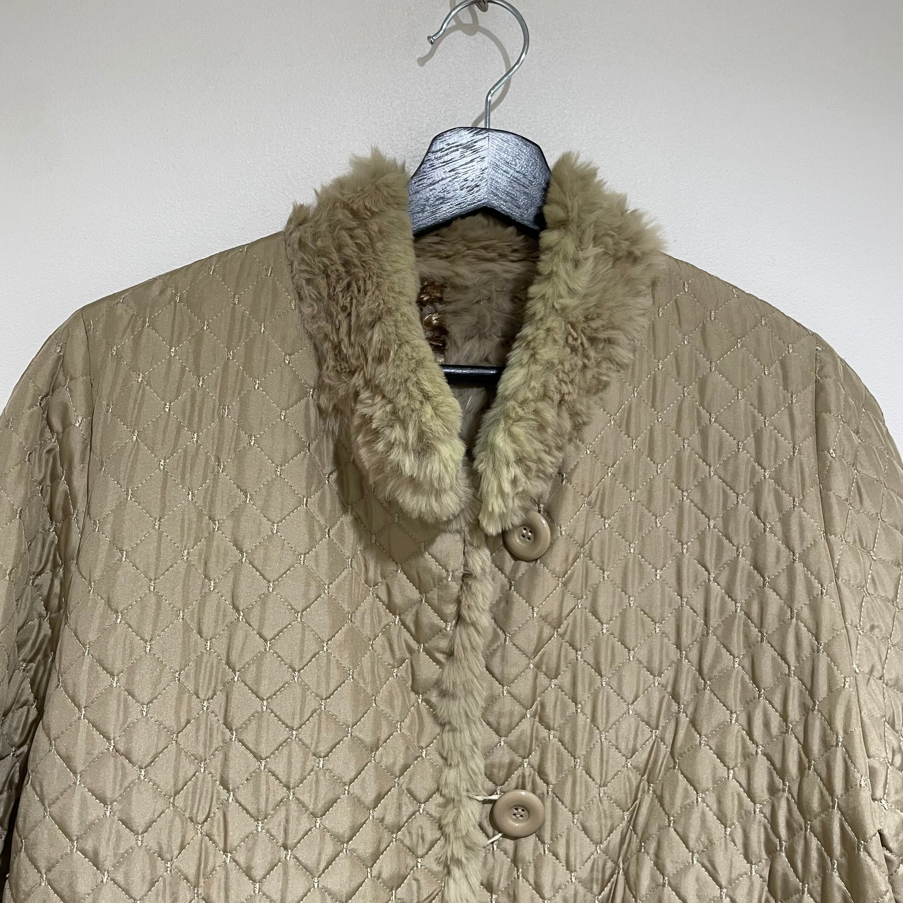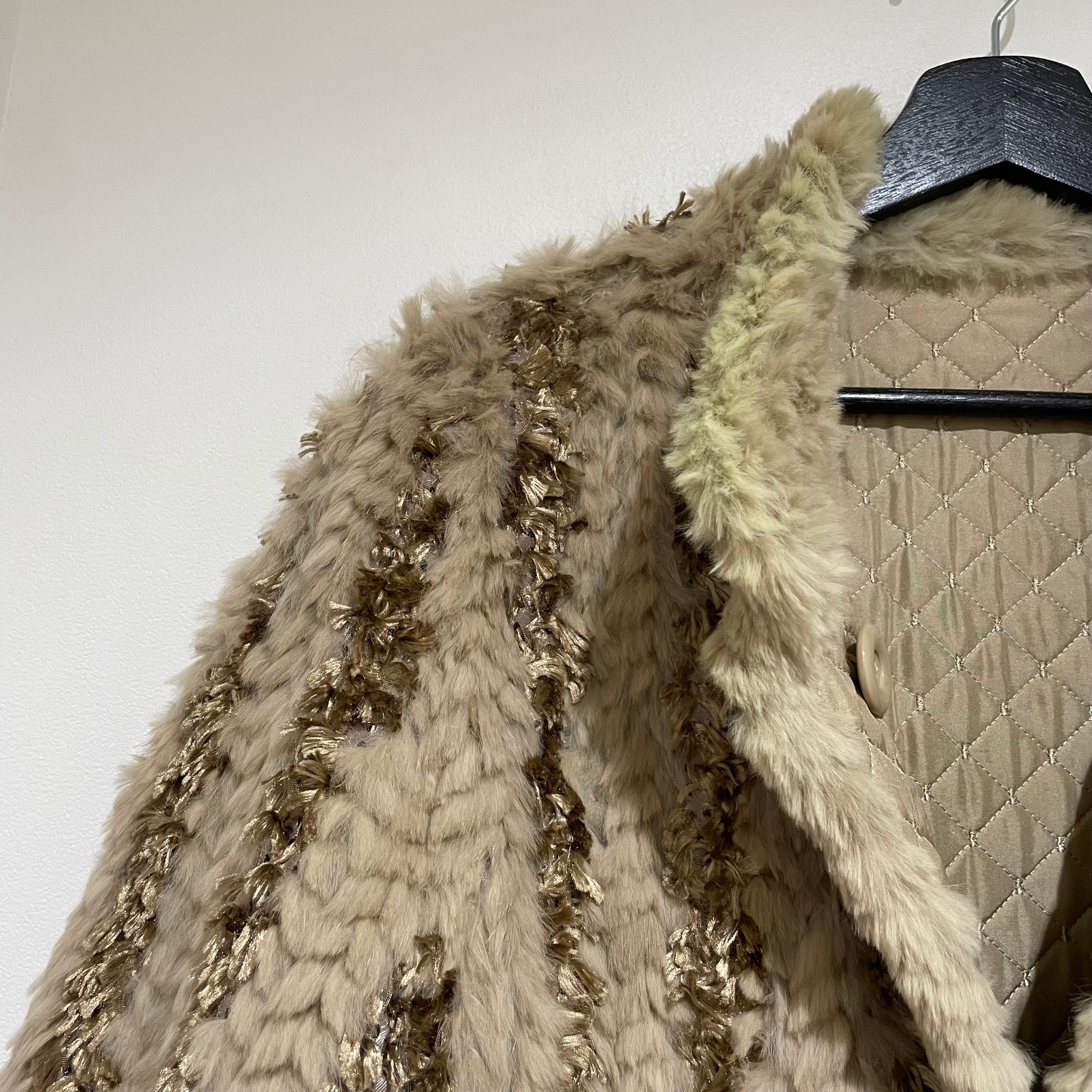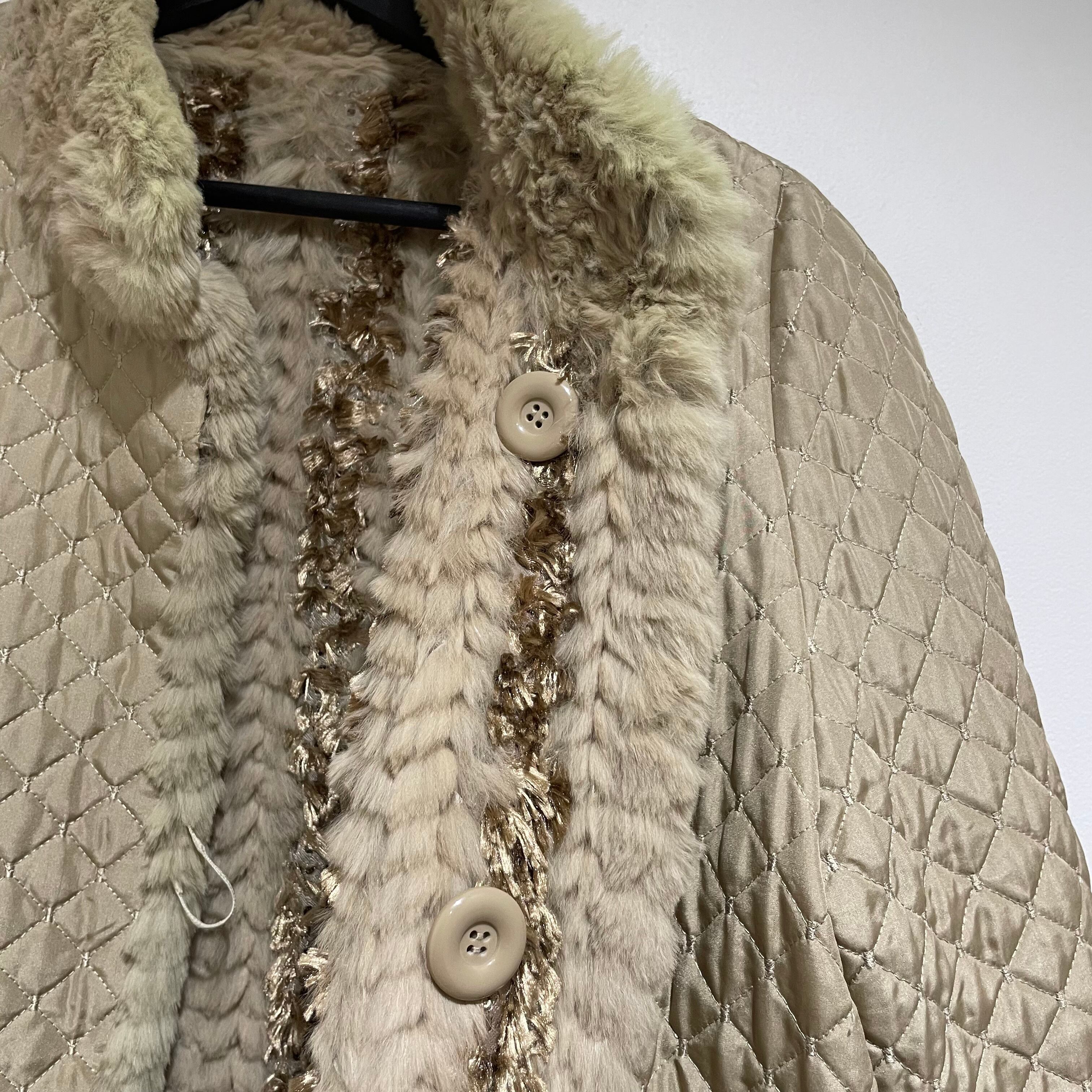 25D143 vintage rabbit fur × silk reversible coat