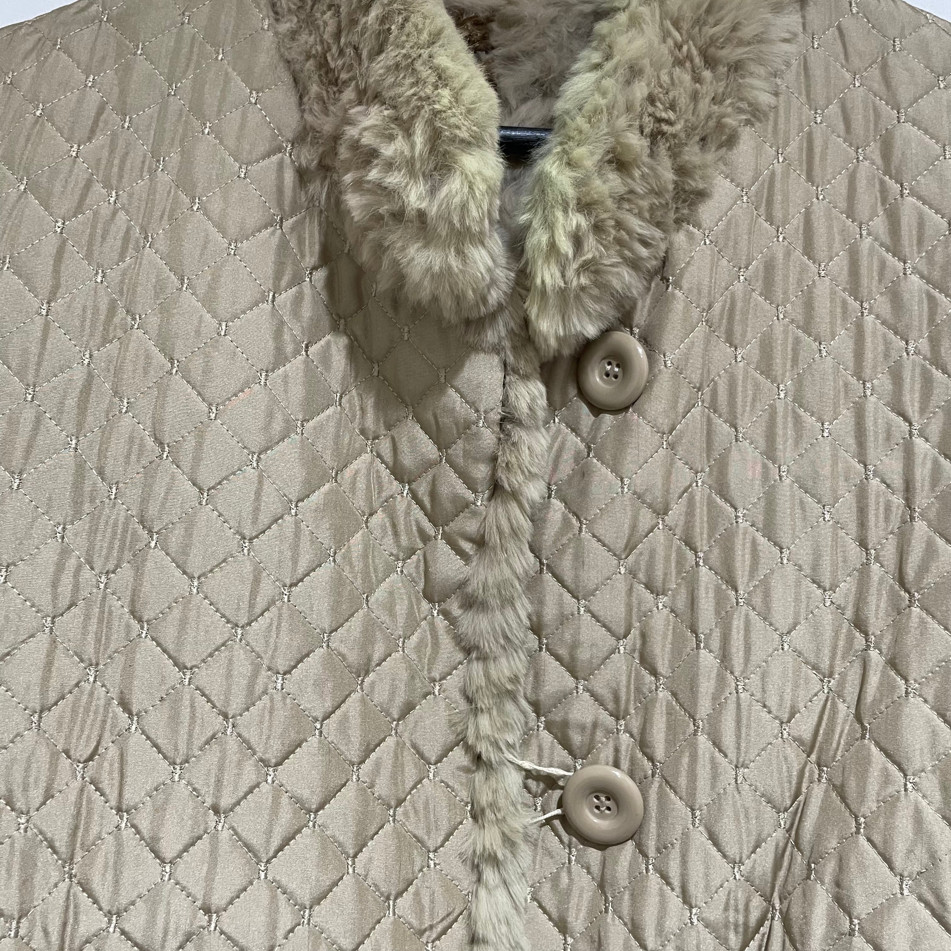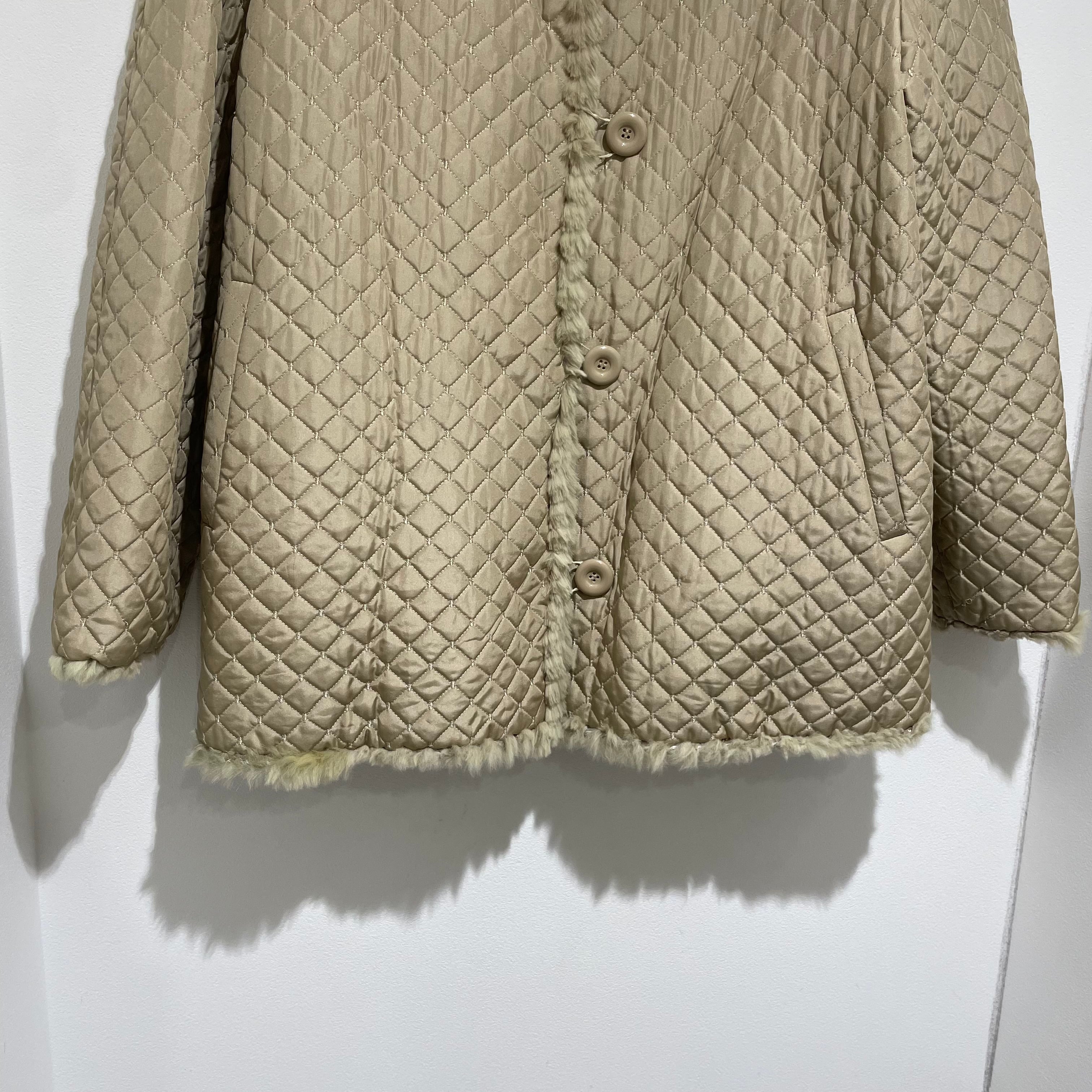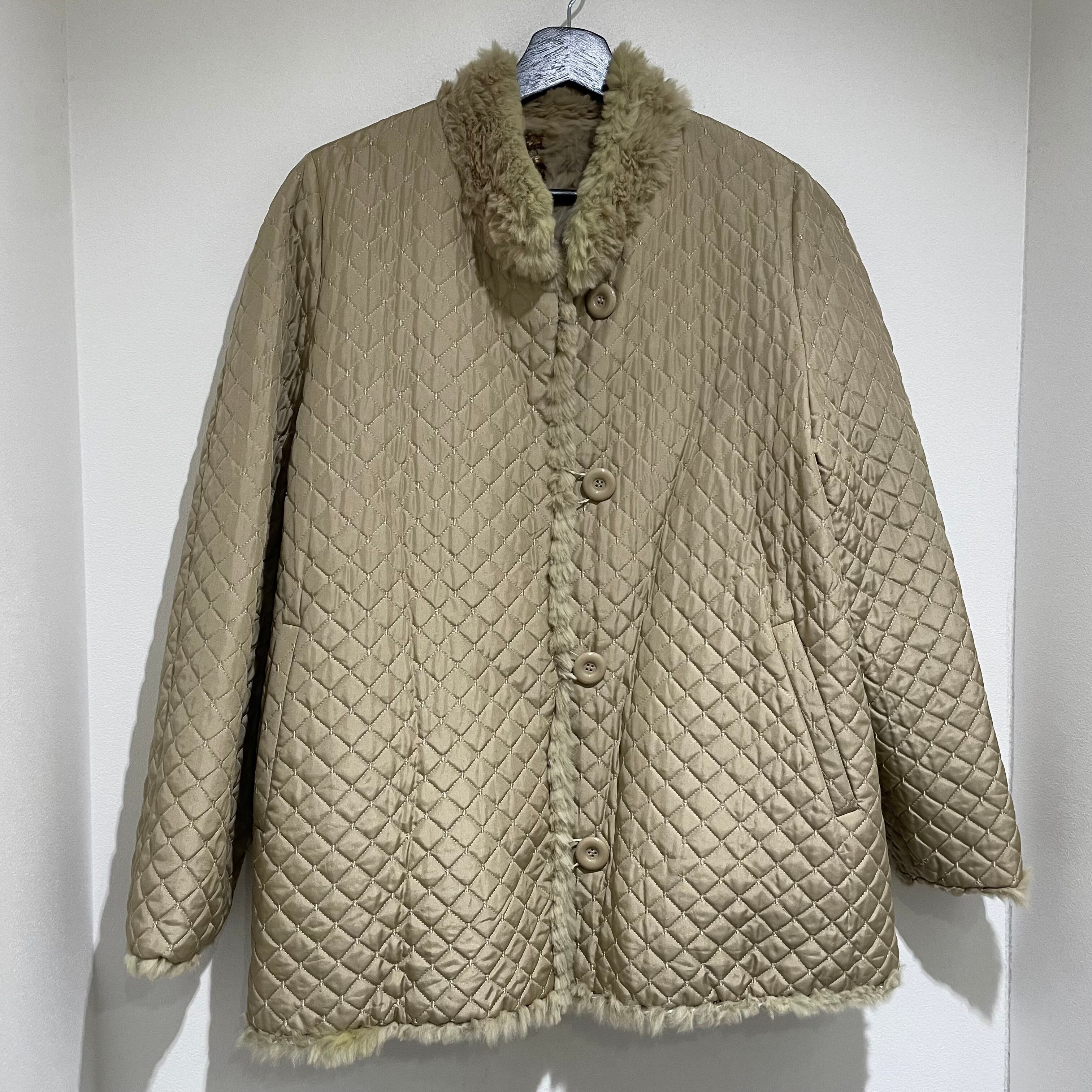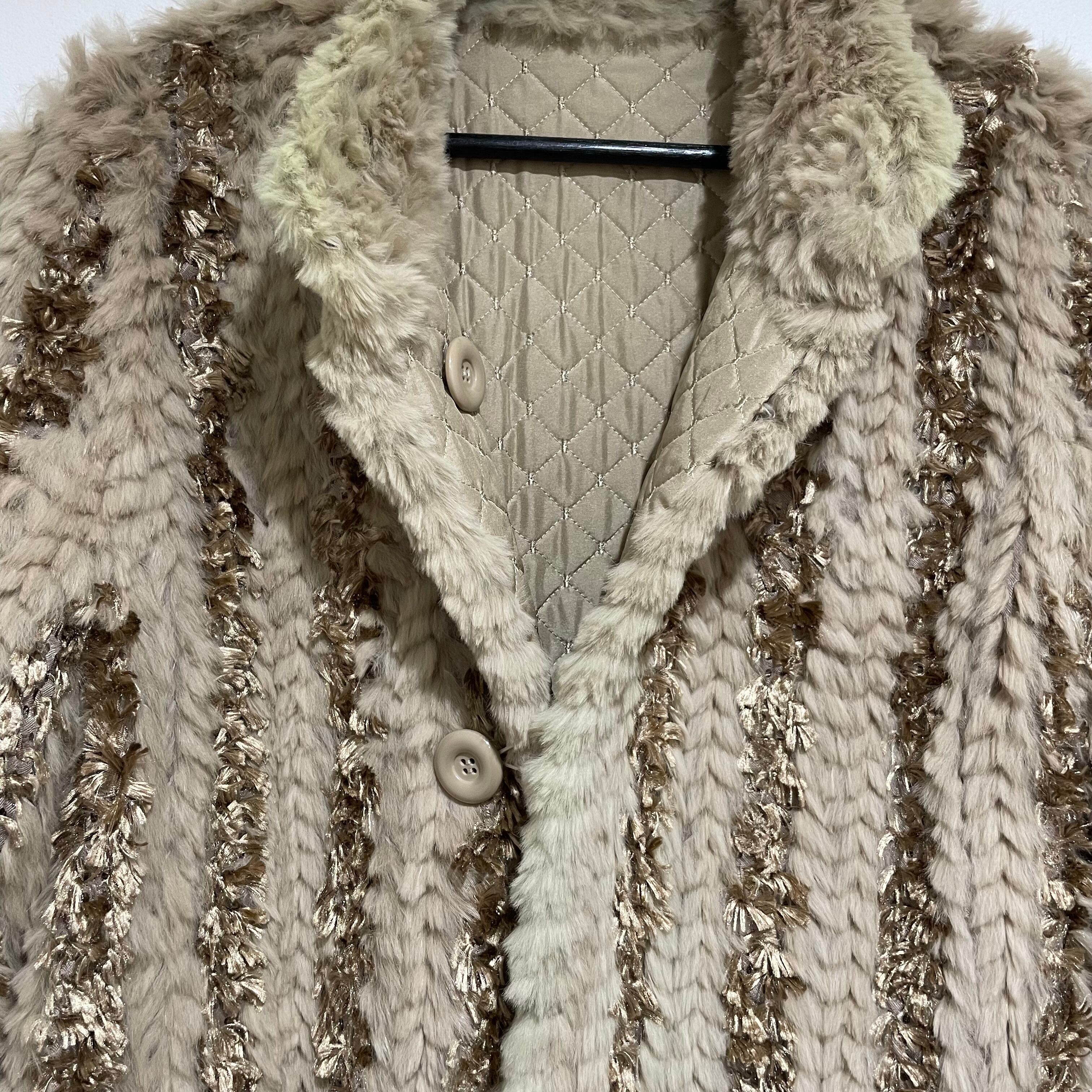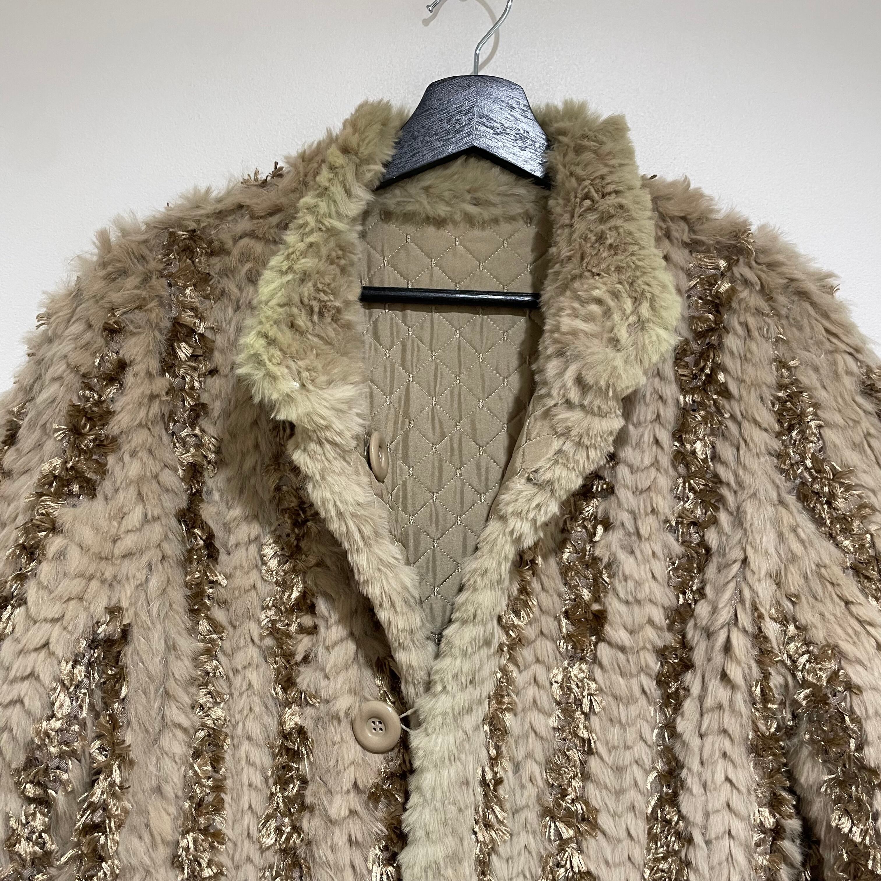 25D143 vintage rabbit fur × silk reversible coat