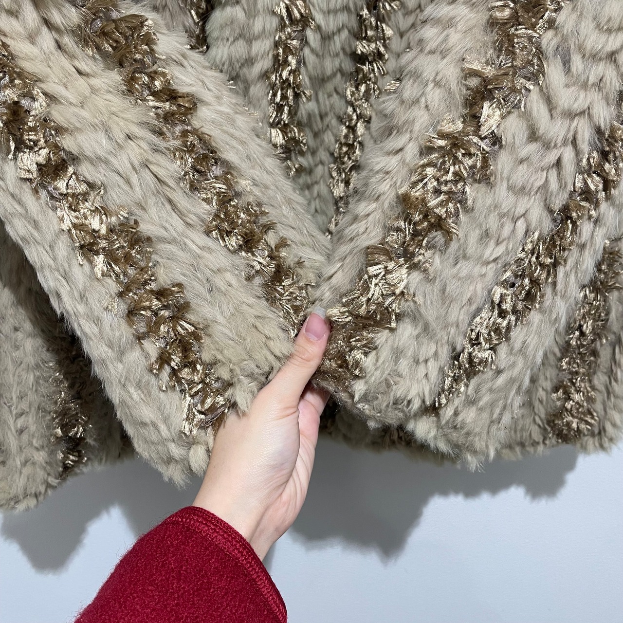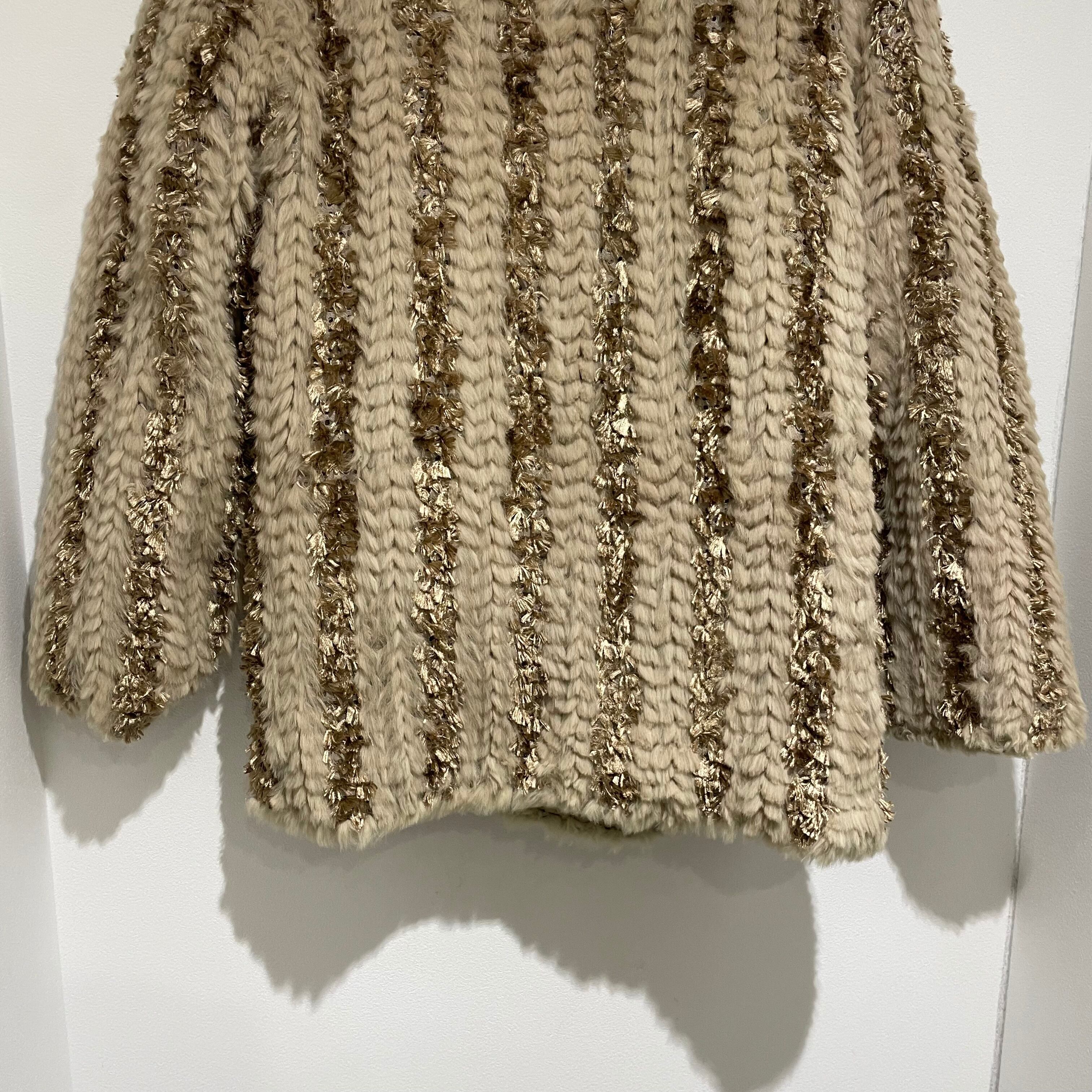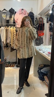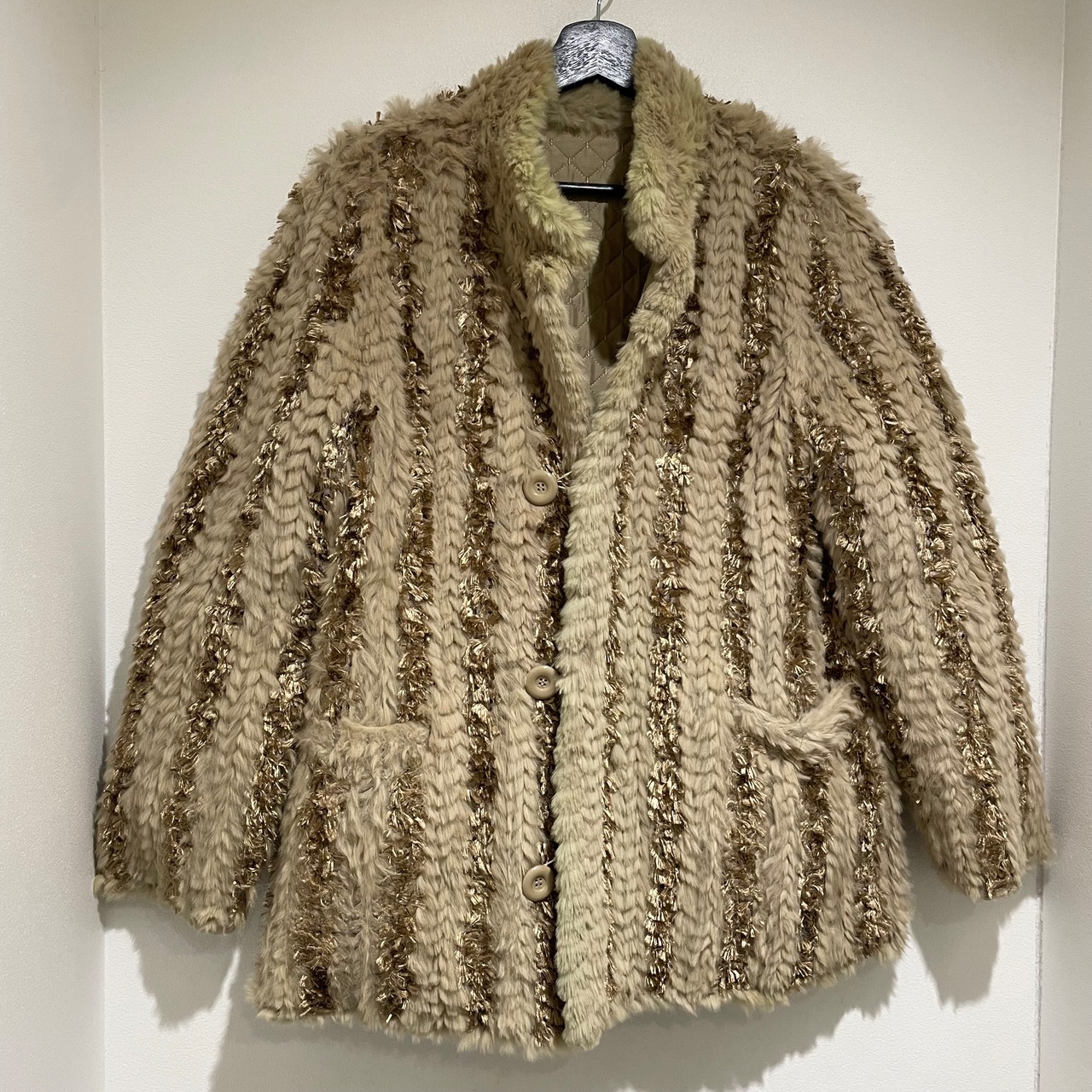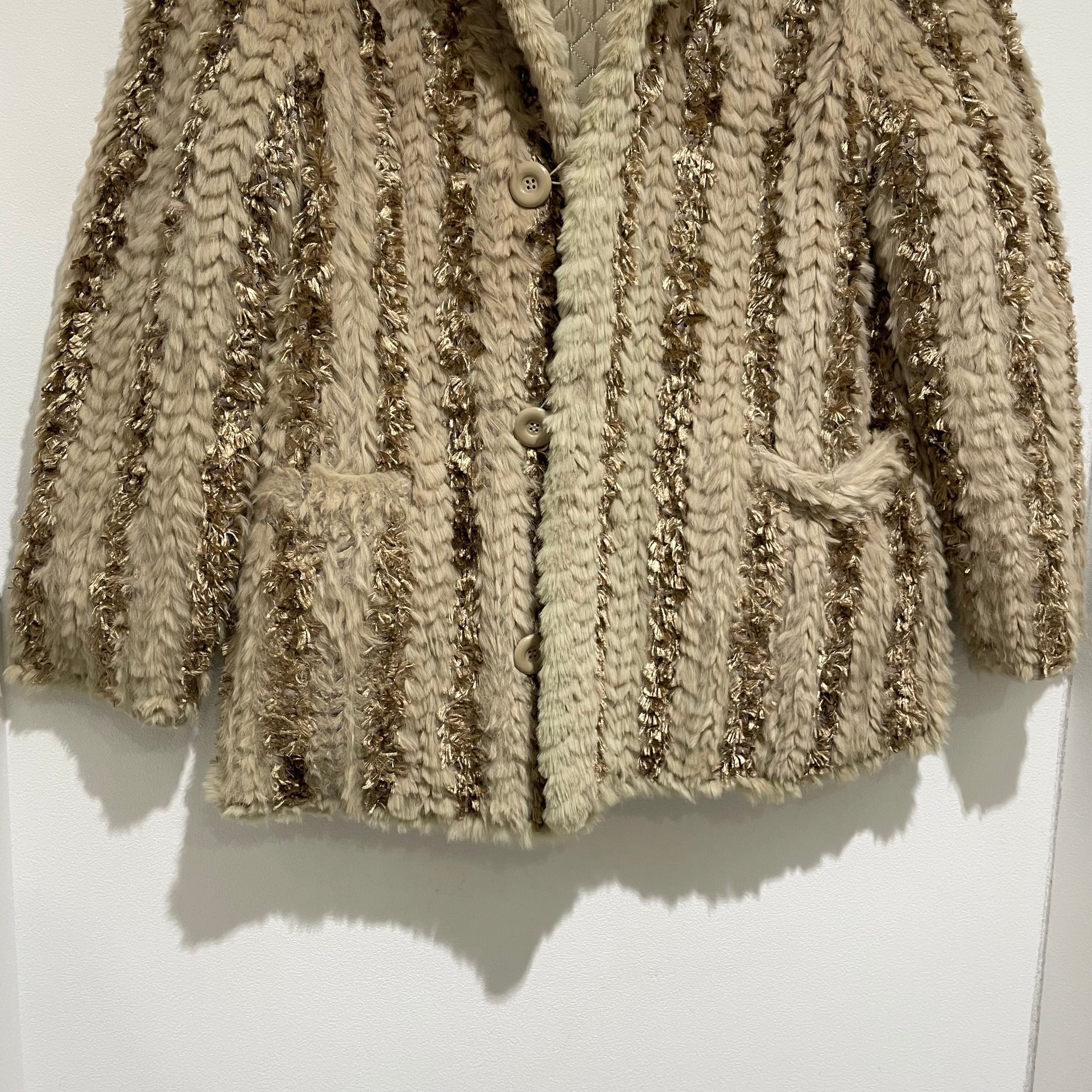 25D143 vintage rabbit fur × silk reversible coat