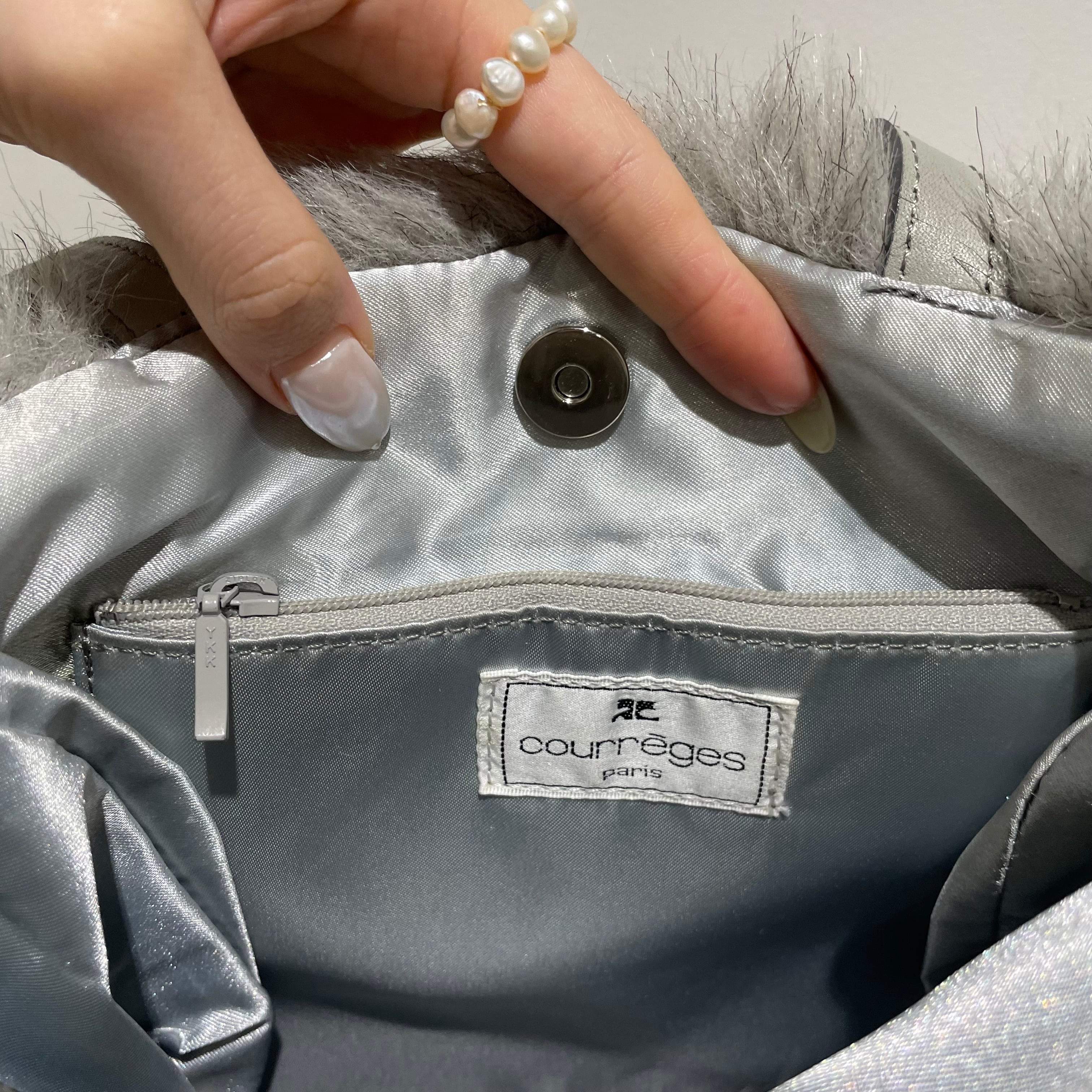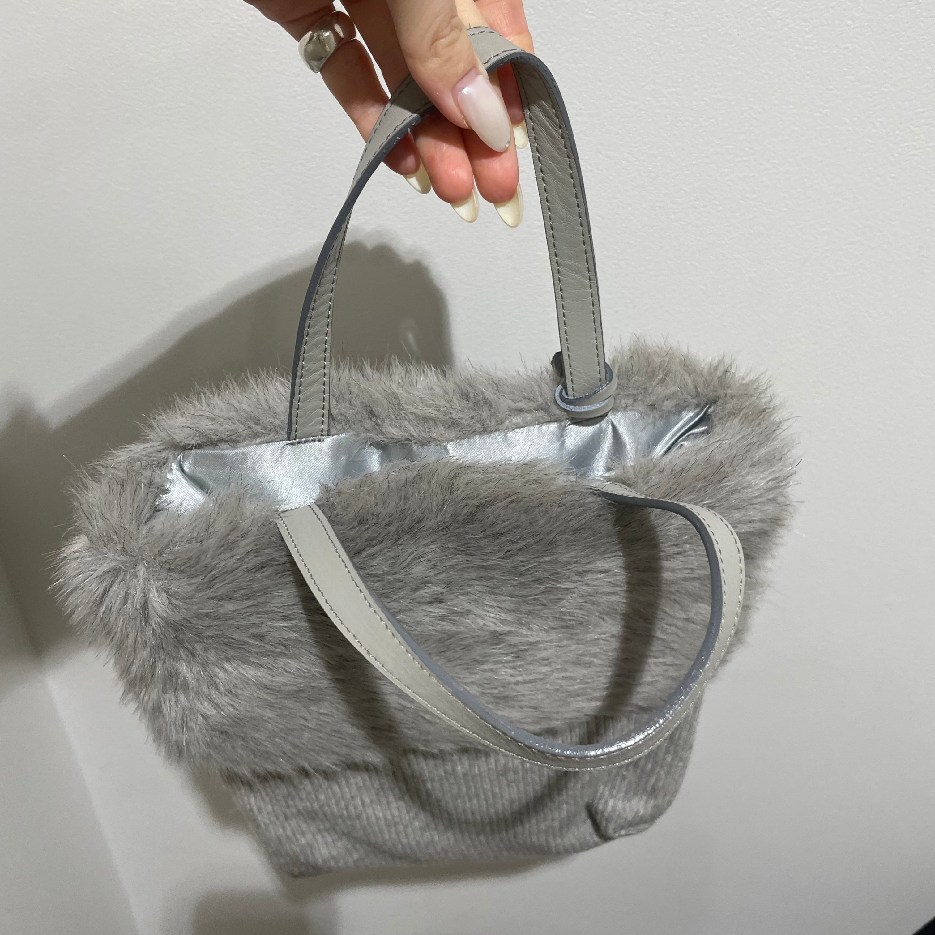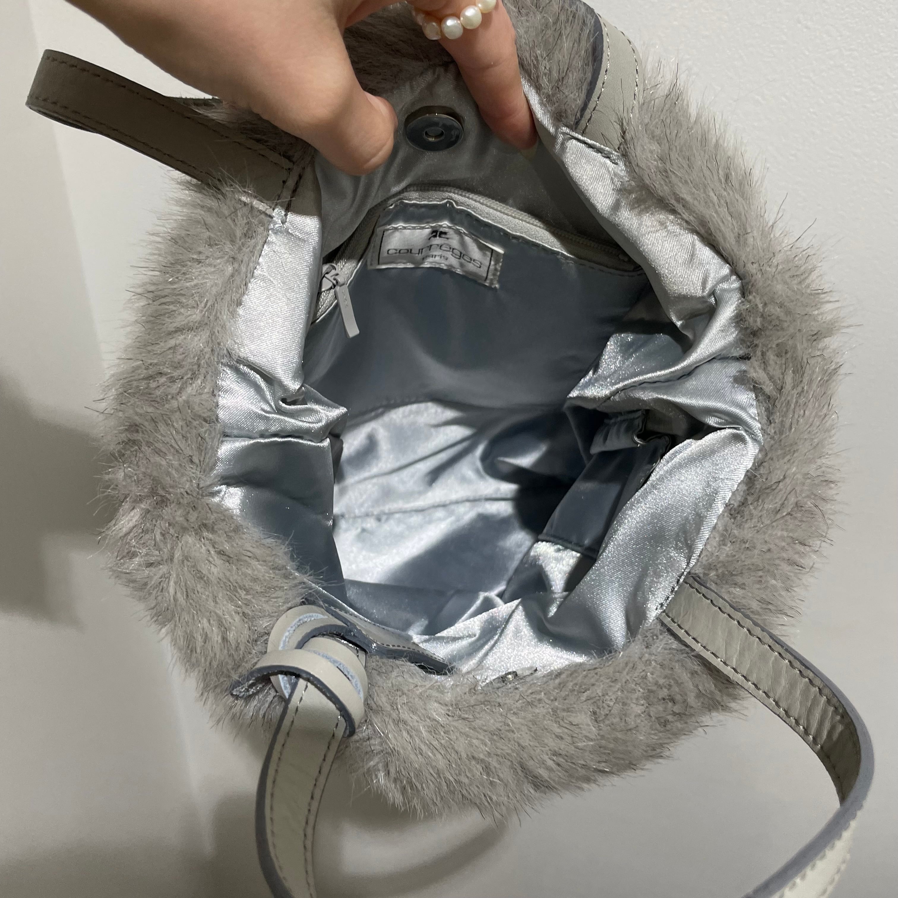 23076 Courreges fur × knit bag