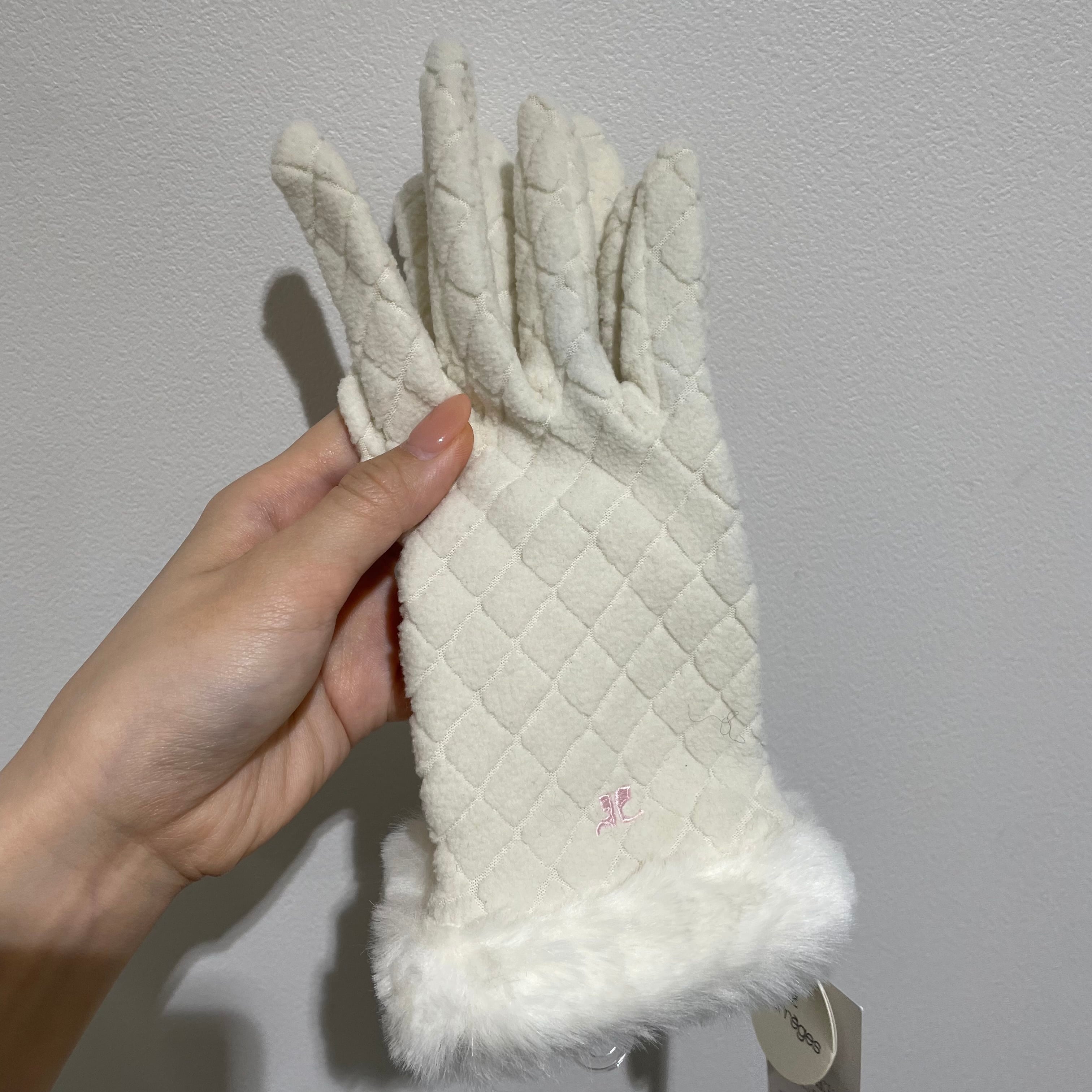 23479 Courreges velour × fur gloves